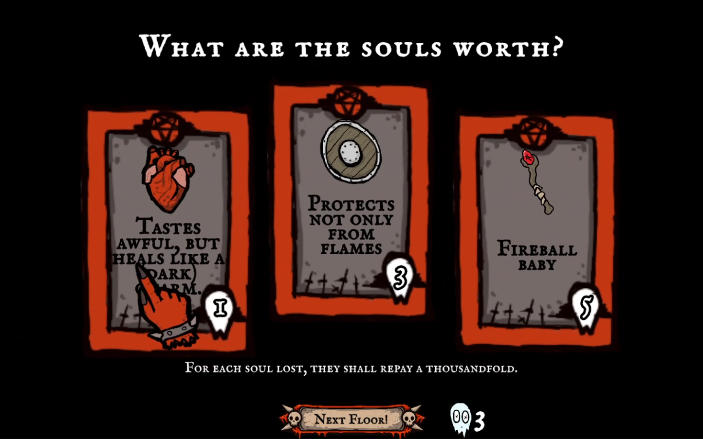 On each floor you can find 3 souls which can be freed. Those souls then can be traded for upgrades.